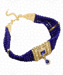 1 قطعة قلادة مطرزة بالخرز من الأحجار الكريمة مصنوعة يدوياً على الطراز المغربي بتصميم قابل للتعديل وسلسلة تمديد.
