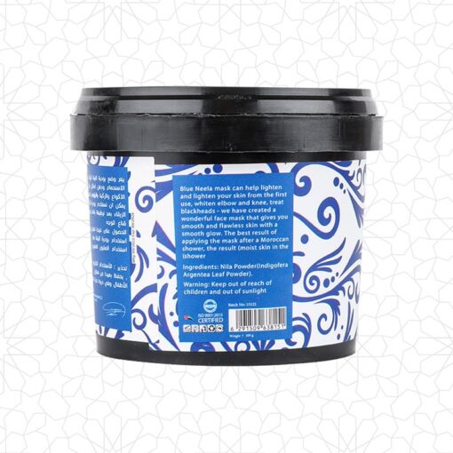 تعمل النيلة الزرقاء على تفتيح تفتيح وتبييض البشر، والتخلص من آثار الشمس، تزيل الترهلات الجلدية تخلص من الكلف والرؤوس السوداء والدهون الزائدة، تمنح البشرة رائحة جذابة، توحيد لون الجسم والتخلص من التصبغات والبقع الداكنة في الجسم والوجه.