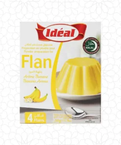 Pour the cold milk into a saucepan, add Ideal flan Banana , stir until it boils, and then continue boiling it until it thickens. pour the mixture into molds or serving cups, then place it in the refrigerator for 2 hours until it cools.
