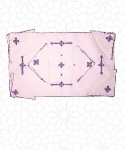 Crafted by skilled Berber women from the heart of the Middle Atlas Mountains, using the double-sided embroidery technique, this Ethnic Moroccan tray cloth boasts identical geometric designs on both sides.
